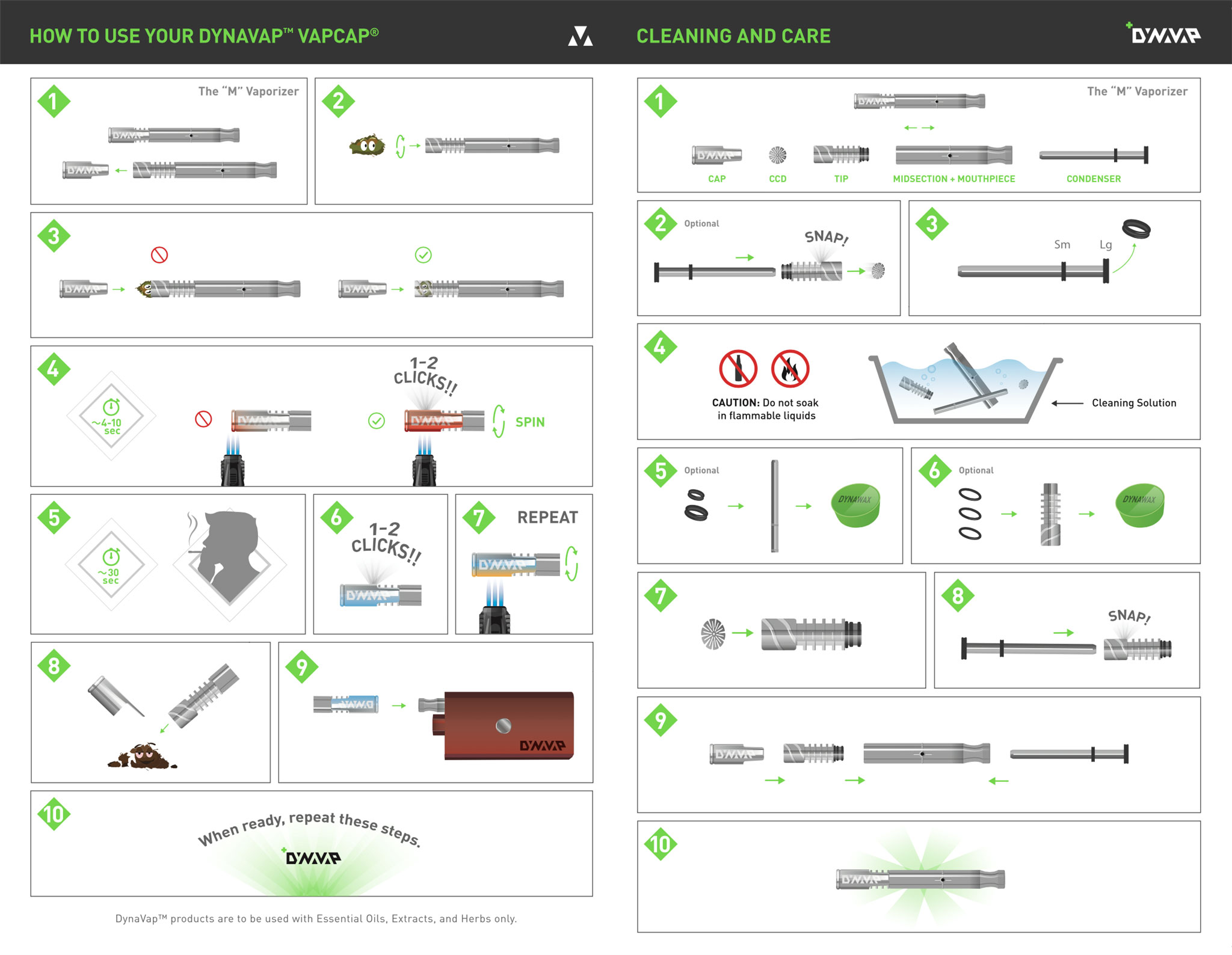 Dies ist das Zeichen dafür, dass eine Temperatur zwischen ~170°C und ~220°C erreicht ist und es kann gedampft werden. Sobald man nach einem langem Zug von ca. 10 Sekunden ein weiteres knacken vernimmt, ist die Temperatur wieder unter 170°C gesunken und eine der bis zu drei Sessions ist beendet. Nun sollte der DYNAVAP etwas abkühlen und man kann erneut aromatischen Dampf genießen.
